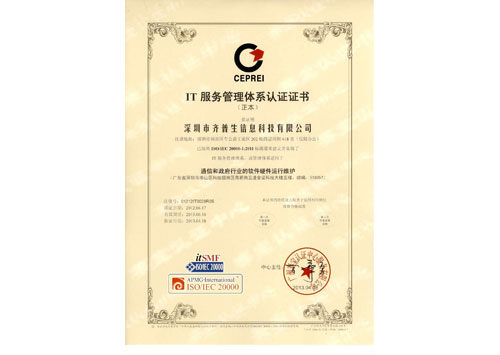 IT服務(wù)管理體系認(rèn)證證書(shū)